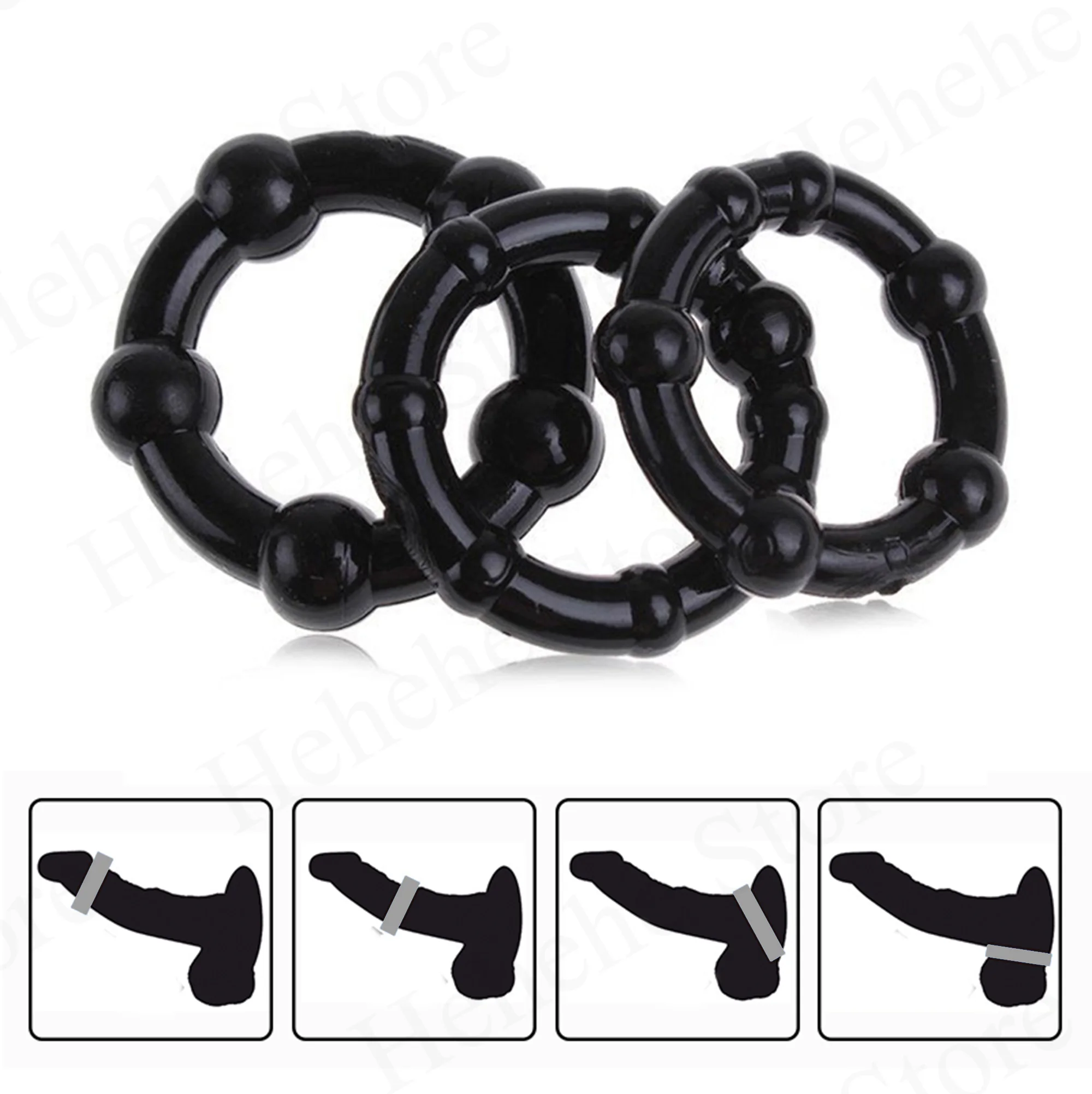 Anillo de silicona para el pene para hombres, Corrector de prepucio, anillo de resistencia, retraso de la eyaculación, Juguetes sexuales, 3 piezas